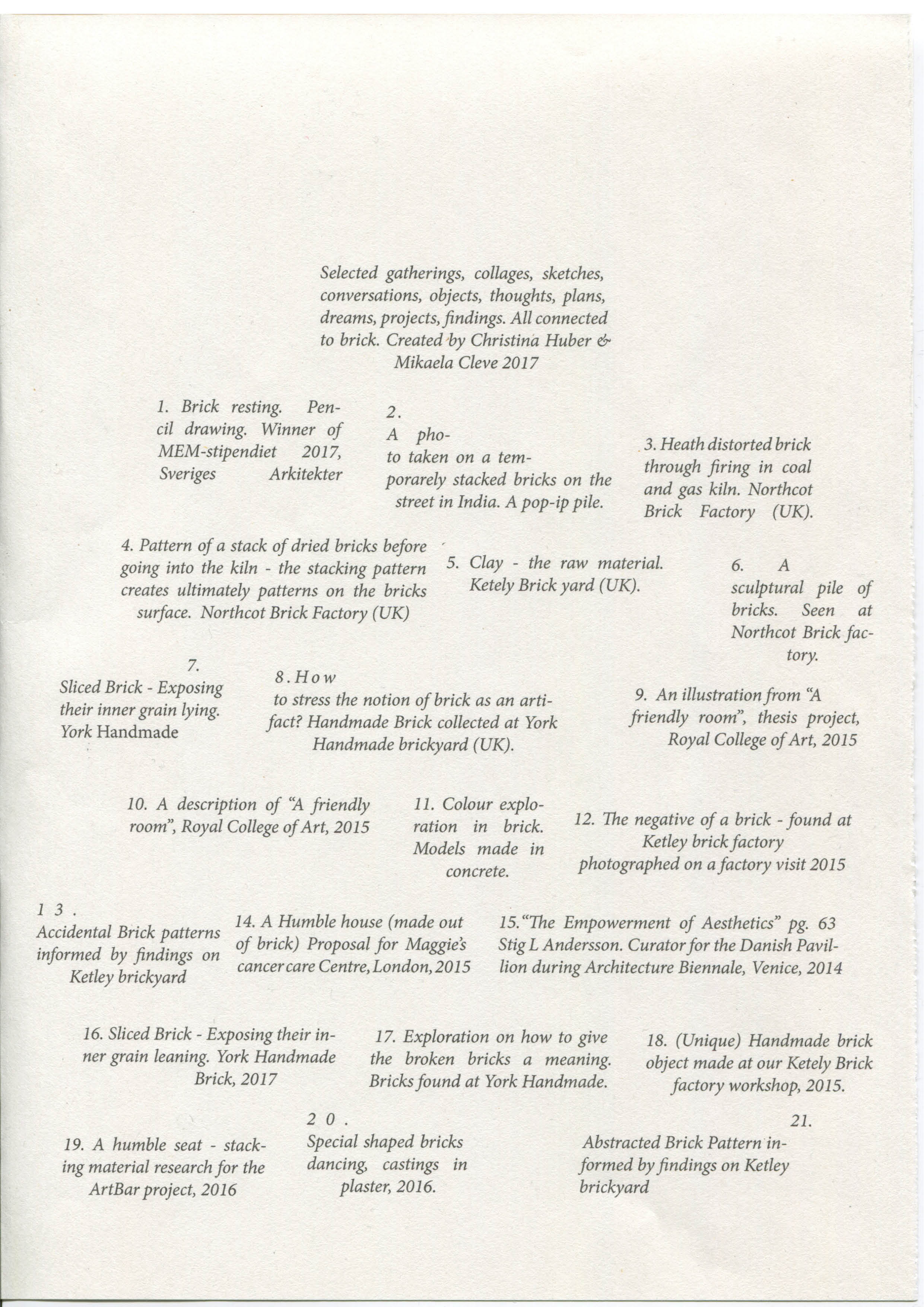 The booklet is part of an ongoing research on brick in its various forms, materiality and secret behaviors.